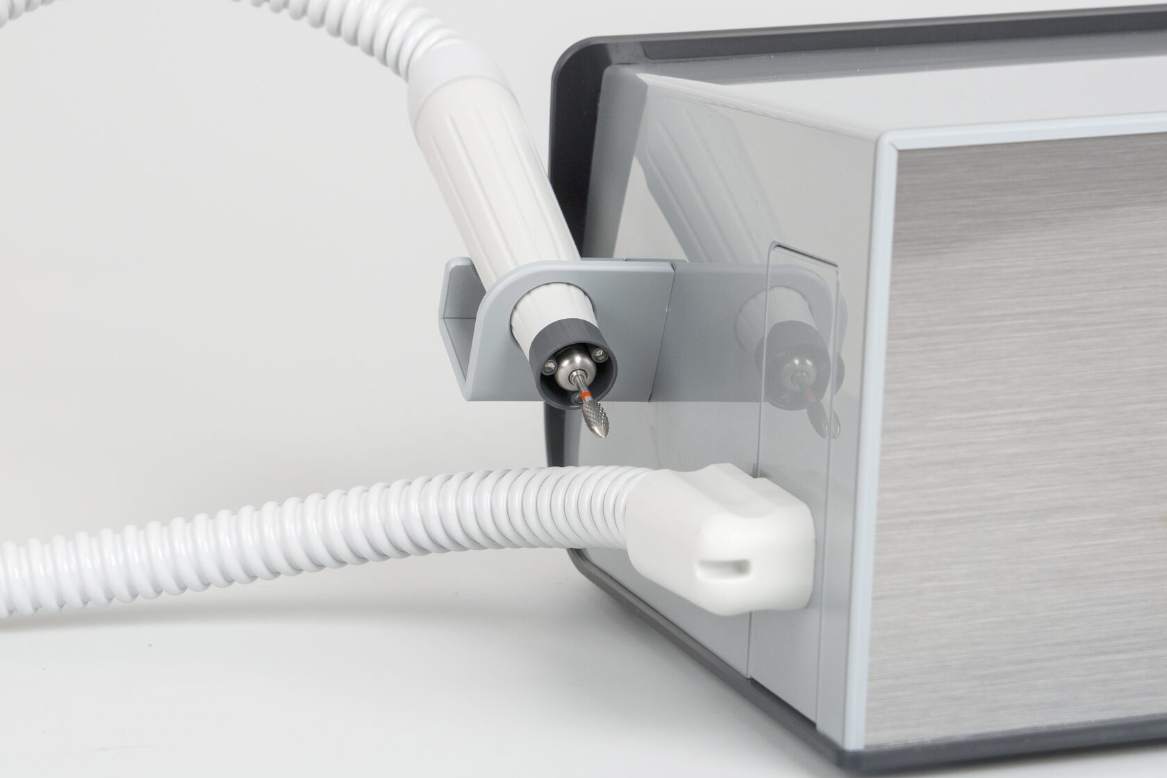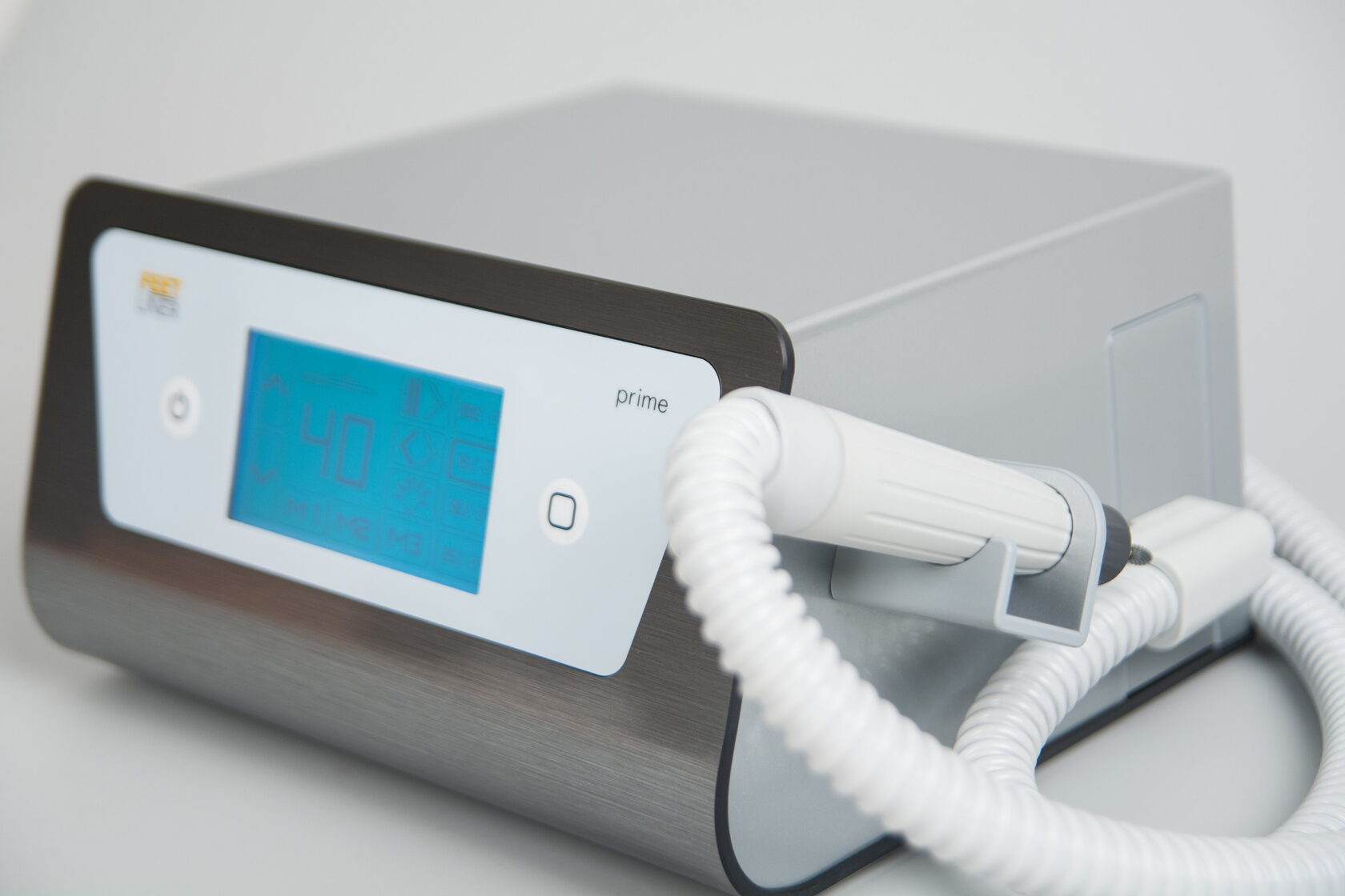 Педикюрный аппарат FeetLiner Prime оснащен бесщеточными моторами наконечника и пылесоса. Функция паузы, реверс на ходу, три ячейки памяти для сохранения настроек и счетчик времени до замены фильтра. Особенности модели: 40 000 об/мин, крутящий момент 9,09 Н*см, подсветка на наконечнике, сенсорный экран.