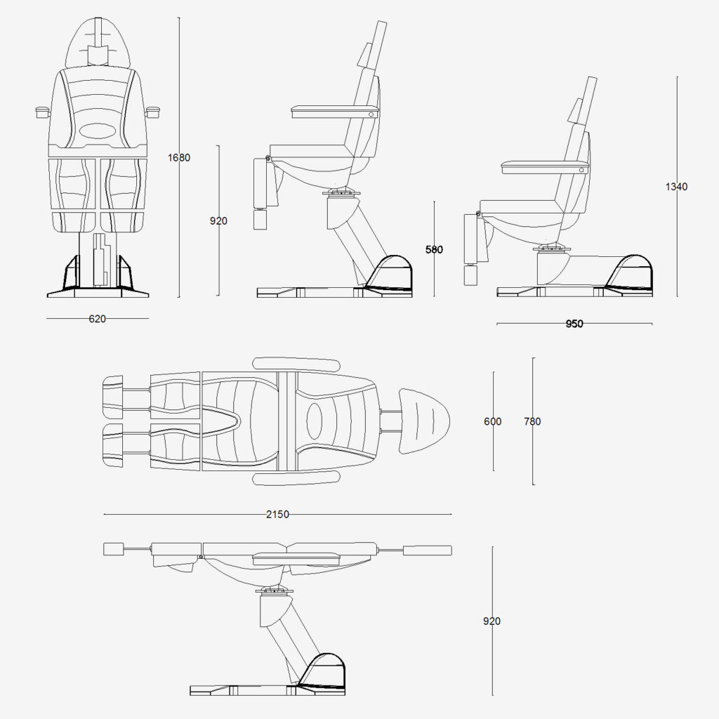 – Механизм поворота (возможность механически поворачивать кресло вместе с клиентом на угол до 270 градусов вокруг оси и фиксировать вращение)